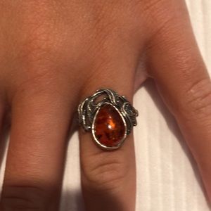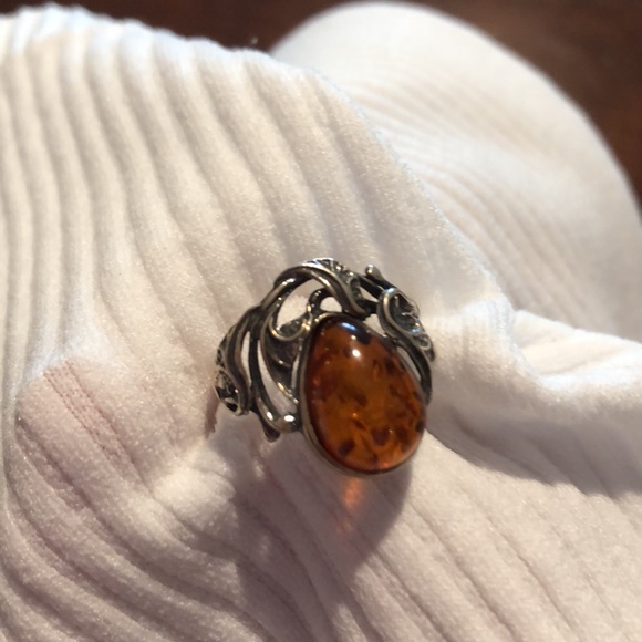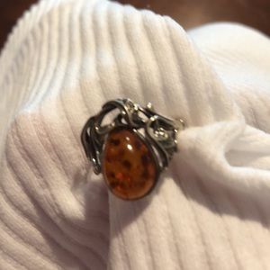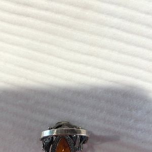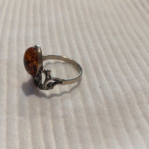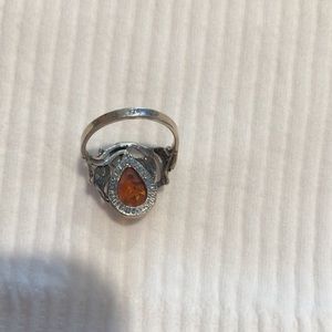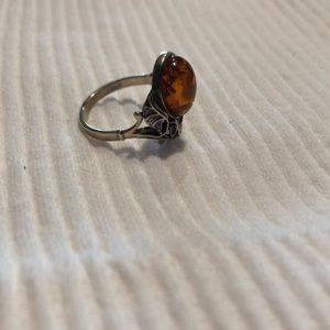 Silver ring with yellow/amber fill Unsure of size, possibly 7