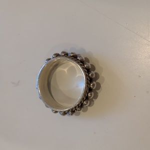 silver ring with small silver beads and braid design. no markings. approximate size 7.