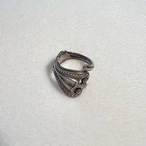 Beautiful silver ring made out of an old fork or spoon, I am not sure which.