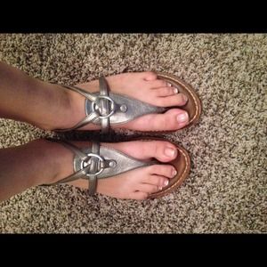The brown pair, right? They look & feel like leather, but they aren't porous like leather is.