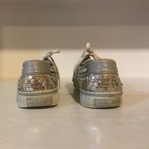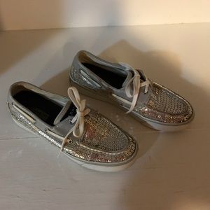Sperry's decorated with silver sequin, good condition, some signs of wear-see pics