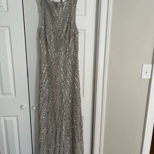 Silver sequined dress from ASOS, now discontinued, but was listed for $261, "Maya" brand. Size 6 tall, wore to my wedding rehearsal dinner. There are a few sequins at the bottom missing (see picture), but overall in good shape as only worn once.