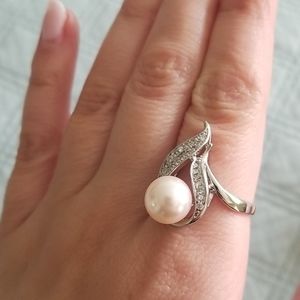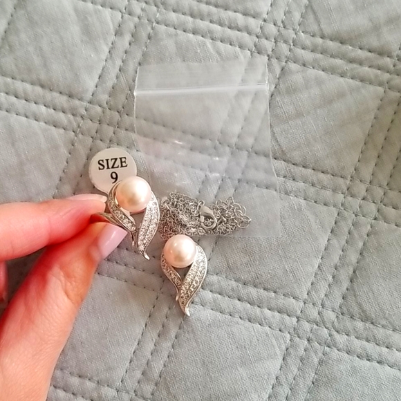 Ring size 9 and necklace, silver and pink pearls