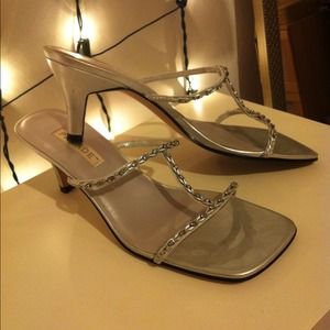 Dressy shoes - silver color with rhinestone. Very pretty. 3 inches heels. Size 8 1/2. No Trade please. Thank you for liking and sharing my listing 😍. I appreciate it 👍.