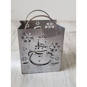 Silver snowman AS IS snowflake tea light holder Xmas decor