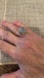 This ring is stunning! It stands up in a silver band setting. It is silver I don’t know if it’s 925 or sterling, it says on the band but hard to get with my camera I believe it says Italy but can’t be sure, If it does then it’s real silver. I think it’s a 6 or 6.5 but with no ring sizer I can’t confirm.