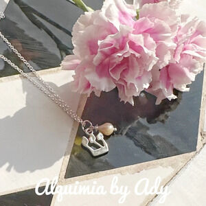 Silver statement 925 stamped dainty freshwater pearl chi charm necklace