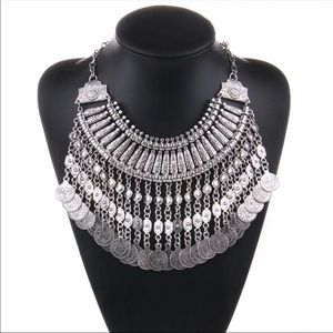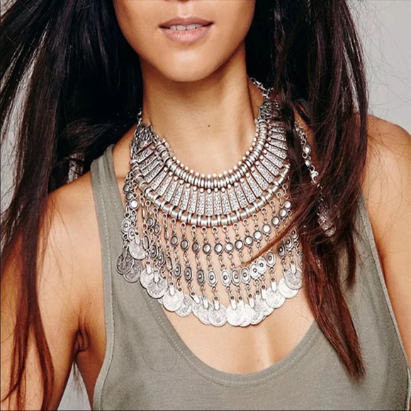 Fashionable Silver Color Vintage Round Zinc Coin Tassels Choker statement necklaces