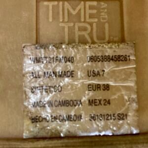 Silver tone studs on clear straps lend edgy appeal to Gladiator Sandals by Time and Tru. Trendy footwear that keeps your look fresh and modern with an ankle strap buckle closure for an adjustable, comfortable fit. Material: Polyurethane upper; Manmade materials outsole, vegan leather insole, Open toe, clear straps with silver pyramid studs, comfort padded foot bed, flat heel. Excellent pre owned condition.