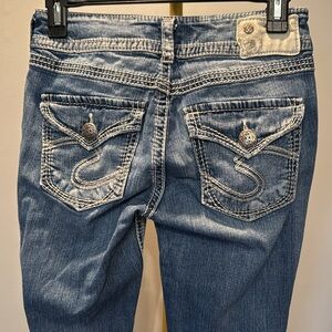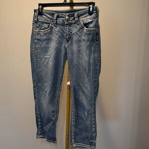 Stylish and comfortable women's Capri blue jeans. Perfect for any casual occasion.