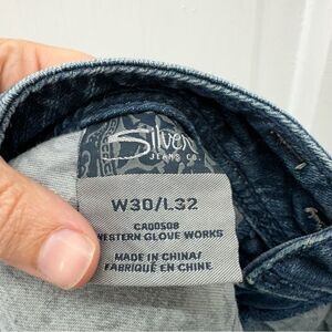 Silver suki surplus thick stitch denim Jean shorts raw hem women's 30 x 4. Note tag says 30 x 32 but these were made into shorts with a 4 inch inseam.