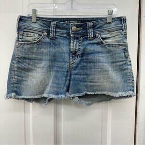 Silver suki surplus thick stitch denim Jean shorts raw hem women's 30 x 4.
