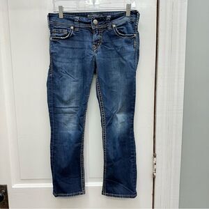 Silver suki thick stitch denim jean capri capris women's 27 x 24.5 can be rolled up or left down depending on length desired