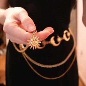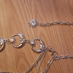 Silver sun and moon whimsygoth metal waist chain belt