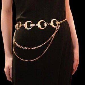 Silver sun and moon whimsigoth waist chain belt