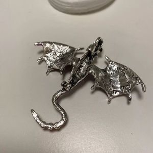 Silver titanium flames red enamel and crystal dragon goth brooch new