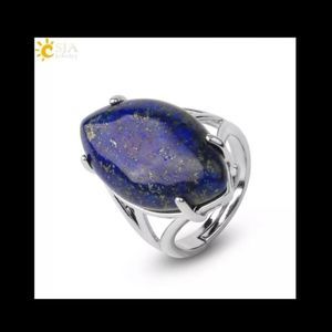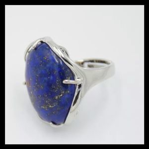 Silver titanium genuine lapis Lazuli stone adjustable boho ring new