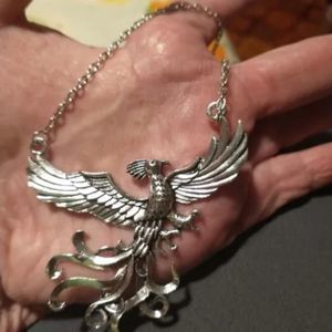 Silver titanium large pheonix pendant goth boho spiritual necklace new