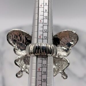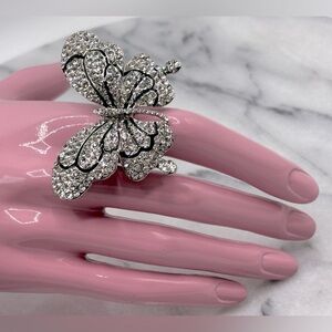 Silver tone & Crystal Chunky Butterfly Stretch Band Ring