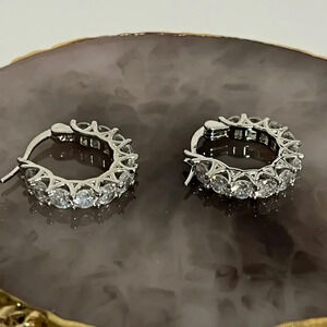 Silver tone Cubic Zirconia Small Hoop Earrings