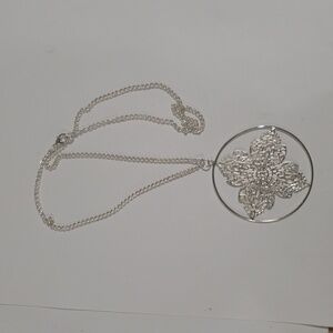 Silver-tone filigree pendant necklace