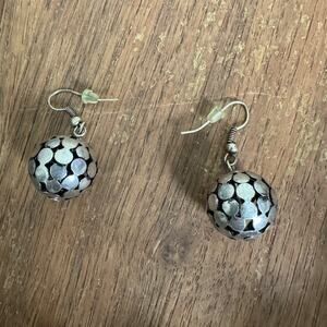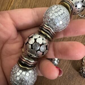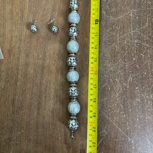 Silver tone Metal Mesh Style Oversized Beaded Necklace and Dangle Earring set