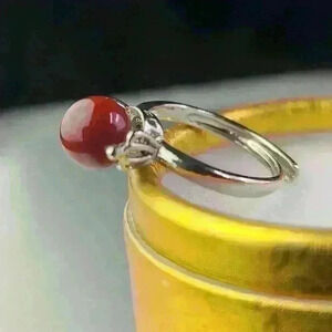 Color is a sliver tone with a dark red between red to brown color gemstone.you can play with that little ball . it can be moved to bring good luck ! it's a fun cute little ring