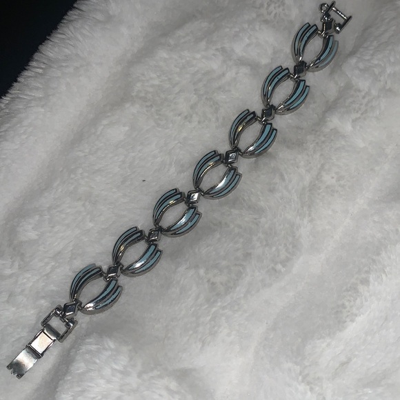 Silver tone and light blue enamel bracelet VINTAGE