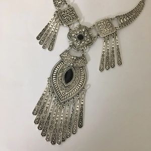 Silver tone bohemian statement necklace