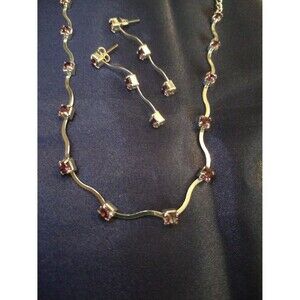 Silver tone choker necklace with magenta colored zirconia and matching earrings. Y2K.