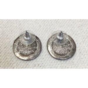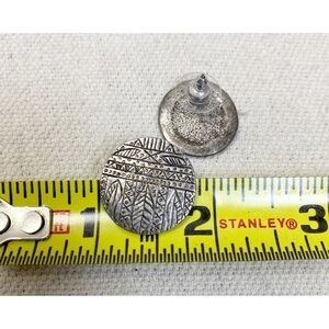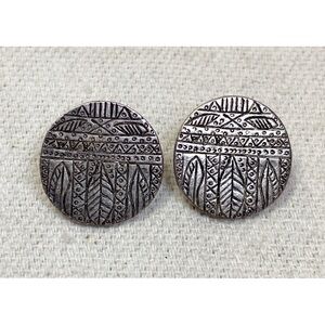 Silver tone disc earrings with etched design - gently worn, no flaws