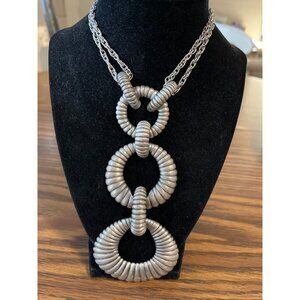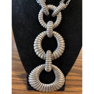 Silver tone double chain pendant necklace unmarked vintage