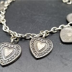 Silver tone lattice victorian doily heart charm braxelet B825