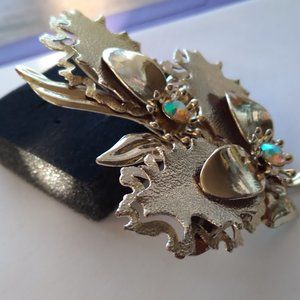 Silver tone oak leaf brooch pin use costume jewelry piece