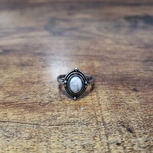 Silver tone ring with white stone size 5.5 see ring on ring sizer in photos