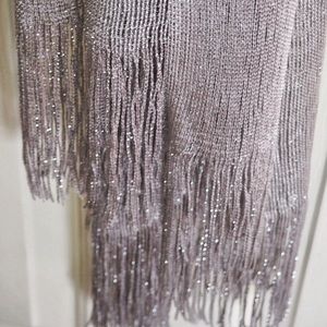 New Silver tone scarf, synthetic material, with tags. Perfect for night or party.