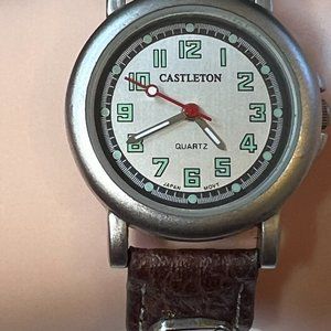 Silver tone with brown bracelet unisex quartz wrist watch New Battery