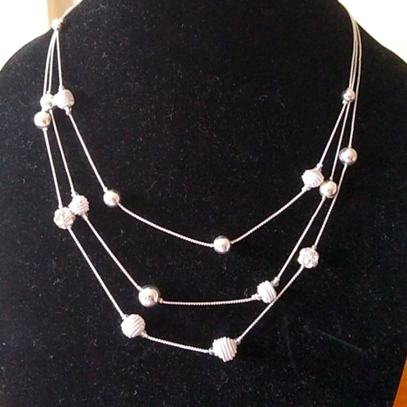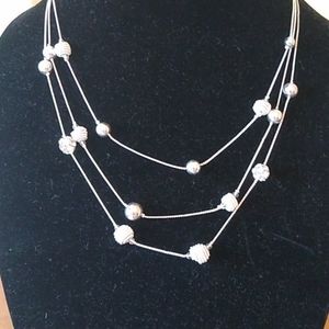Beautiful silver toned fashion necklace with rhinestones,silver balls. Beautiful!