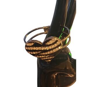 It features a beautiful heart charm with black enamel accents and sparkling clear rhinestones.