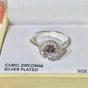 Crystal halo silver toned ring in a very romantic design. Sized 9 ❤️