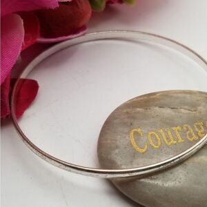 Silver tone round classic bangle. B704