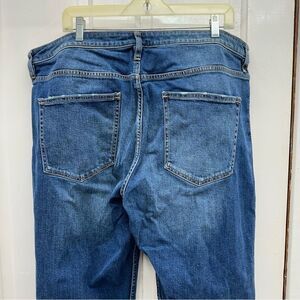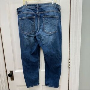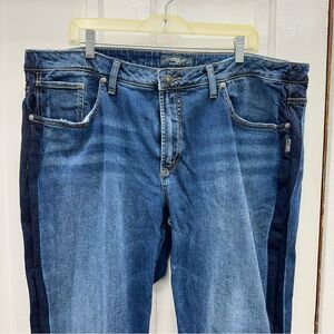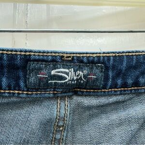 Silver vintage slim denim jeans thick stitch women's 20 x 27 lay flat waist 22. note the darker strips on both sides. almost looks like both sides were 'taken in' or something leaving a darker dye strip down both sides.