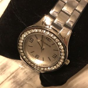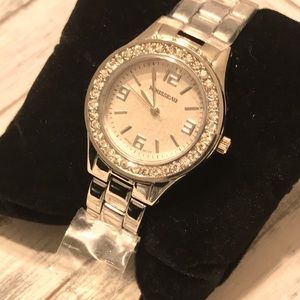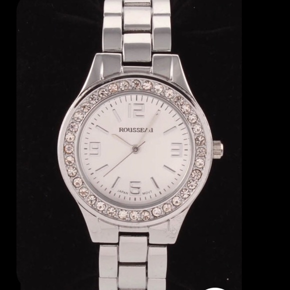 Roueassu Rene 2 beautiful silver watch cubic. Zircon dimamd bezel with plastic still on NIB in stainless steel