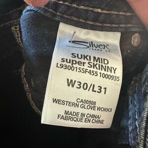 Silver western Suki skinny cowboycore distressed 30x31 jeans