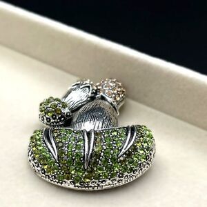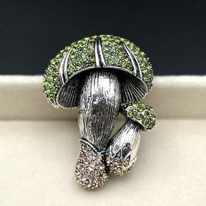 Silver with Emerald and Champagne Topaz Crystal Double Mushroom Pin Back Brooch