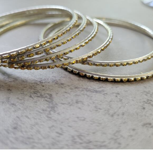 Silver with Gold Glitter Thin Metal Bangles Metallics Stack of 6