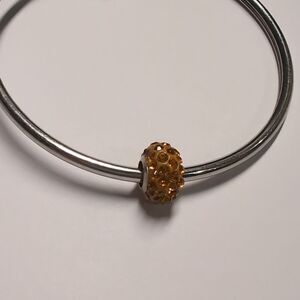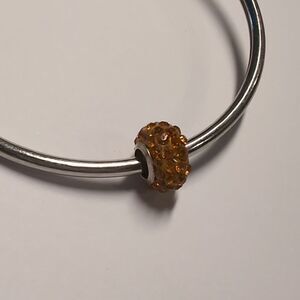 Silver with Orange Pave Charm for Pandora Style Bracelet
