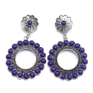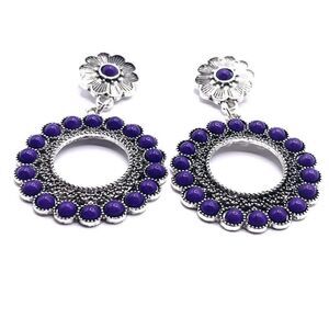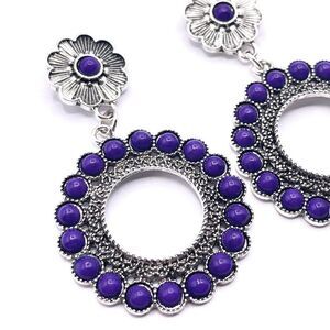 BRAND NEW - Silver with Purple Faux Turquoise Squash Blossom Bohemian Navajo Native Southwestern Post Back Dangling Earrings