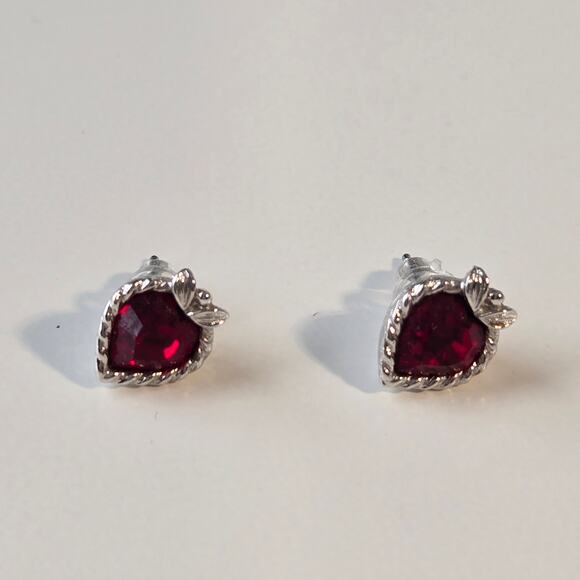 Silver with Ruby Red Heart Crystal Post Earrings