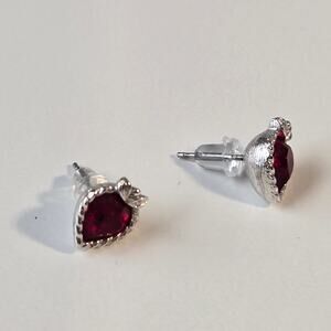 Add a touch of romance to your look with these beautiful petite silver post earrings! Featuring a stunning ruby red heart-shaped crystal, these earrings are perfect for adding a pop of color and sparkle to any outfit.